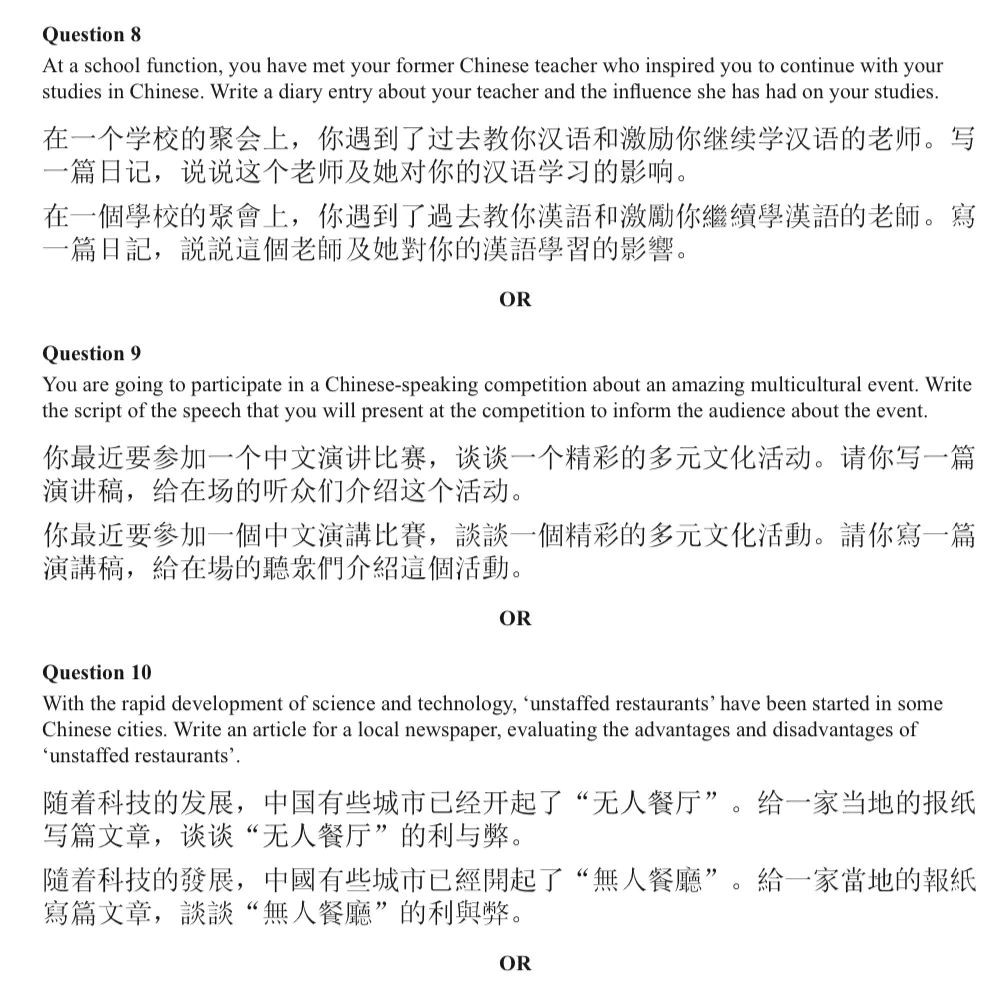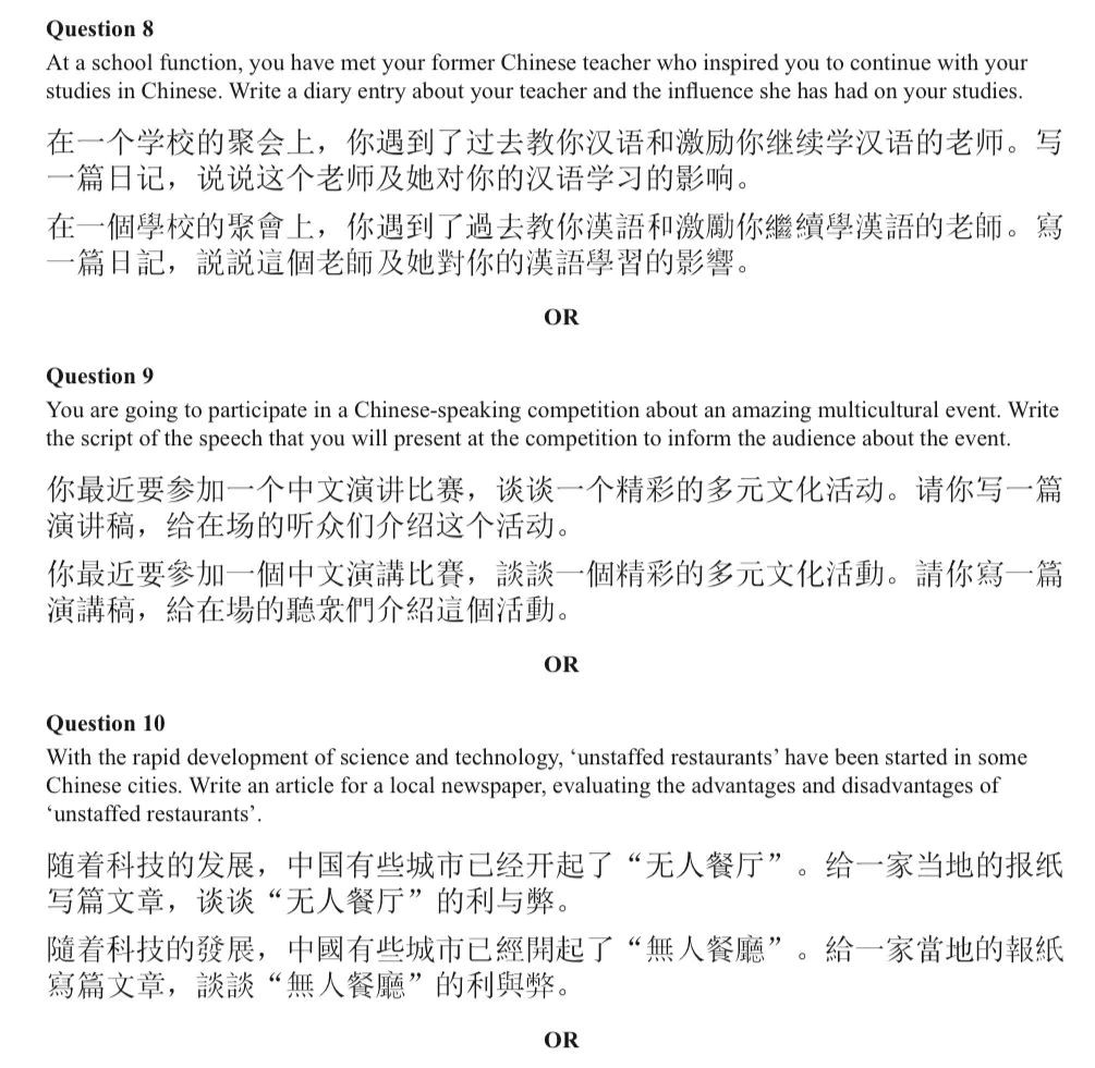 很多题目都给了学生发挥创造力的空间,比如2020年VCE中文第一语言考试的第六题: