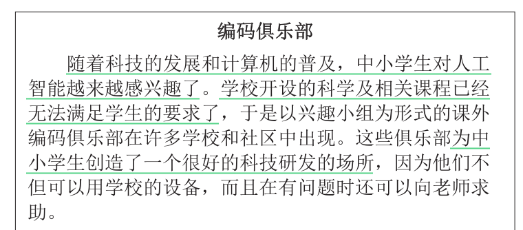 4. 阅读部分的写作不是让学生随心所欲地写自己的观点。学生需要从阅读材料中归纳概括出有用的观点,再以不同于原文的表述方式将这些观点融入自己的写作。