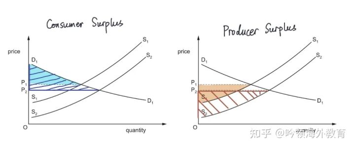 解析:这题需要从图中找出均衡价格下降对Consumer Surplus和Producer Surplus的影响。下图斜线阴影的部分是价格下降后的 Consumer Surplus和Producer Surplus,对比可以看出是都增加了,所以选D。