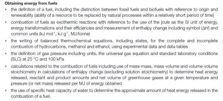 VCE化学AOS1|第一部分:Obtaining energy from fuels