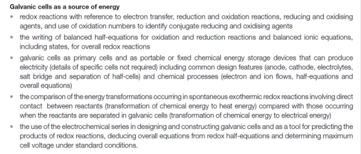VCE化学AOS1|第三、第四部分:Galvanic cells & fuel cell