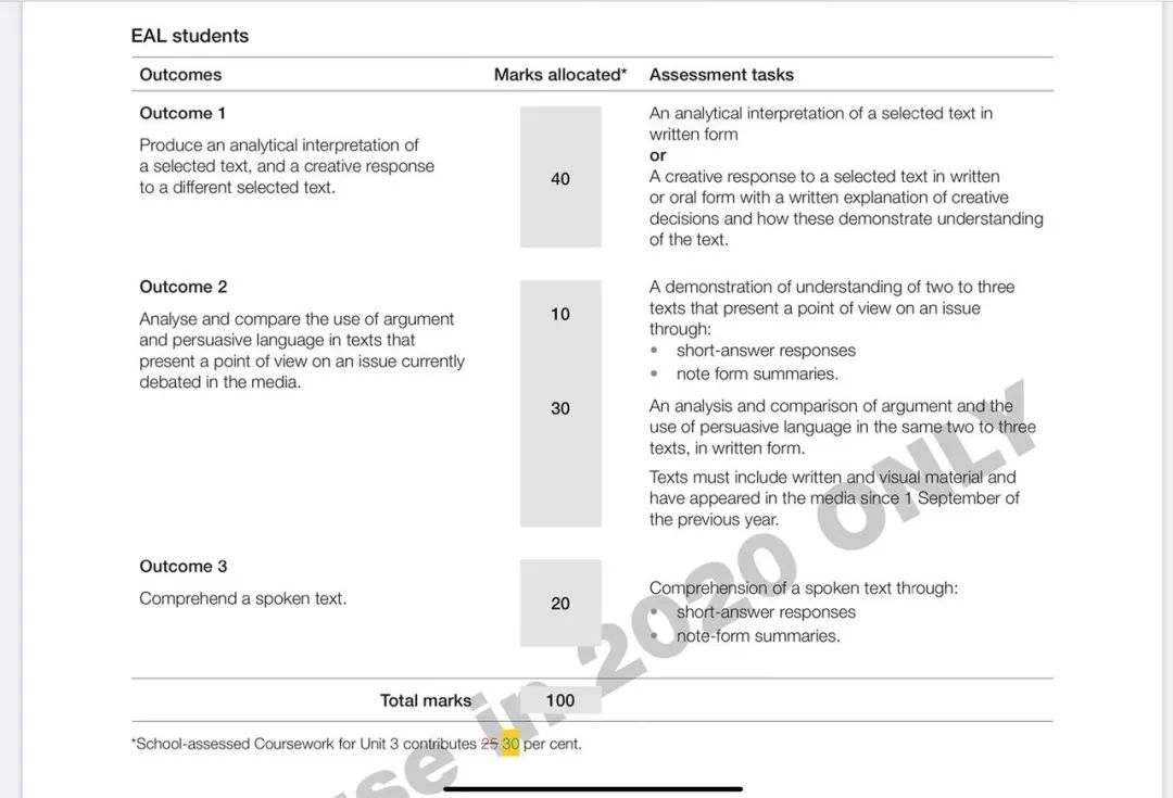 疫情下的2020届考生真是太难了,EAL这样的比例调整,其实一定程度上是在为大家减负——大家可以将更多精力集中在与最终大考题型最直接相关的Unit3 SACs准备上。