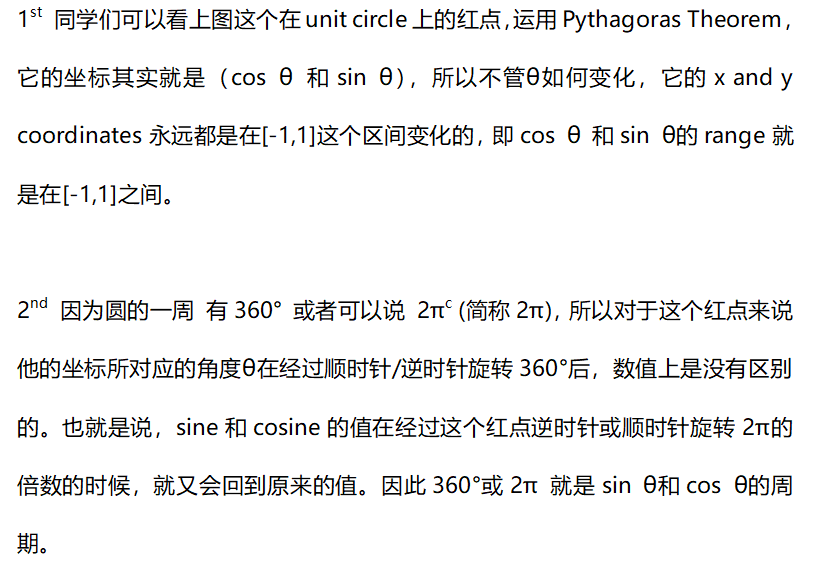 首先前三问,同学们只要在十年级认真学习cos θ 和sin θ图像是怎么由unit circle得出来的就能轻松回答的。