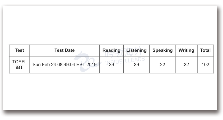 总分:102 (阅读29 听力29 口语22 写作22)