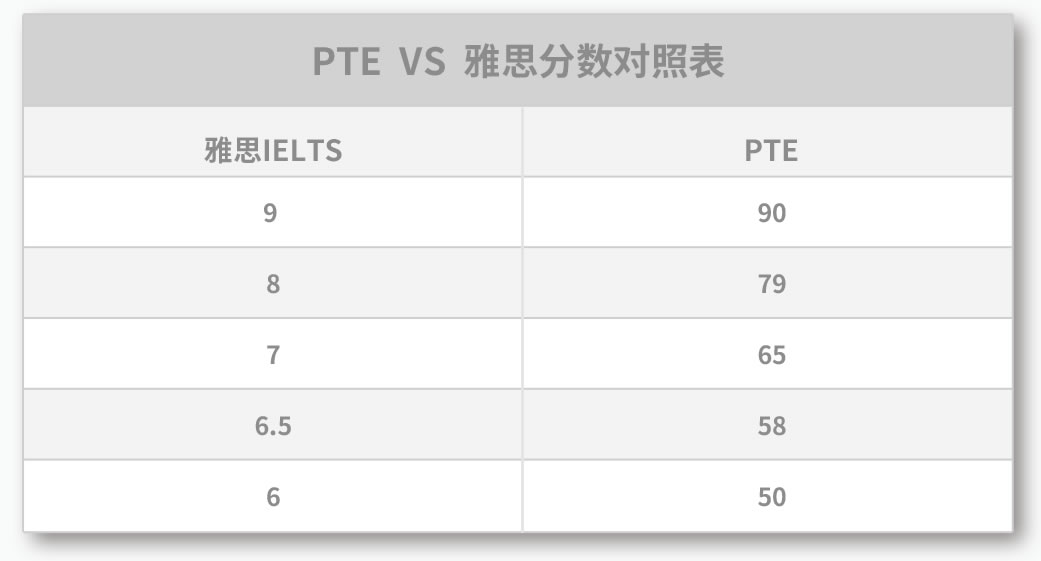 此为部分海外大学和澳洲移民局认可的“雅思-PTE”分数对照,