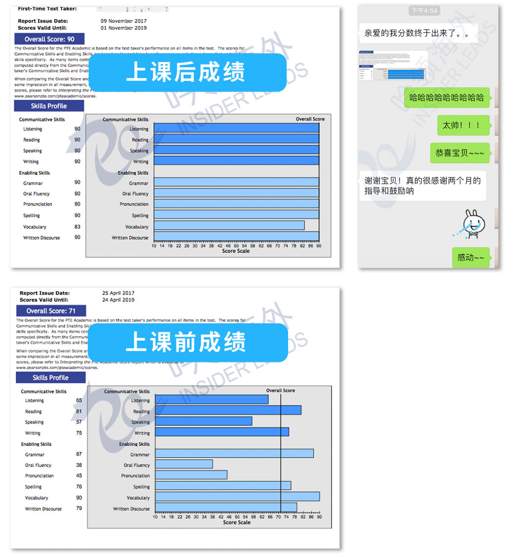 雅思有7分水平,初试PTE受挫 流利度只有38分,又转回雅思备考 ,仍然无果,后来找到龙老师,结课后首考,四项满分!