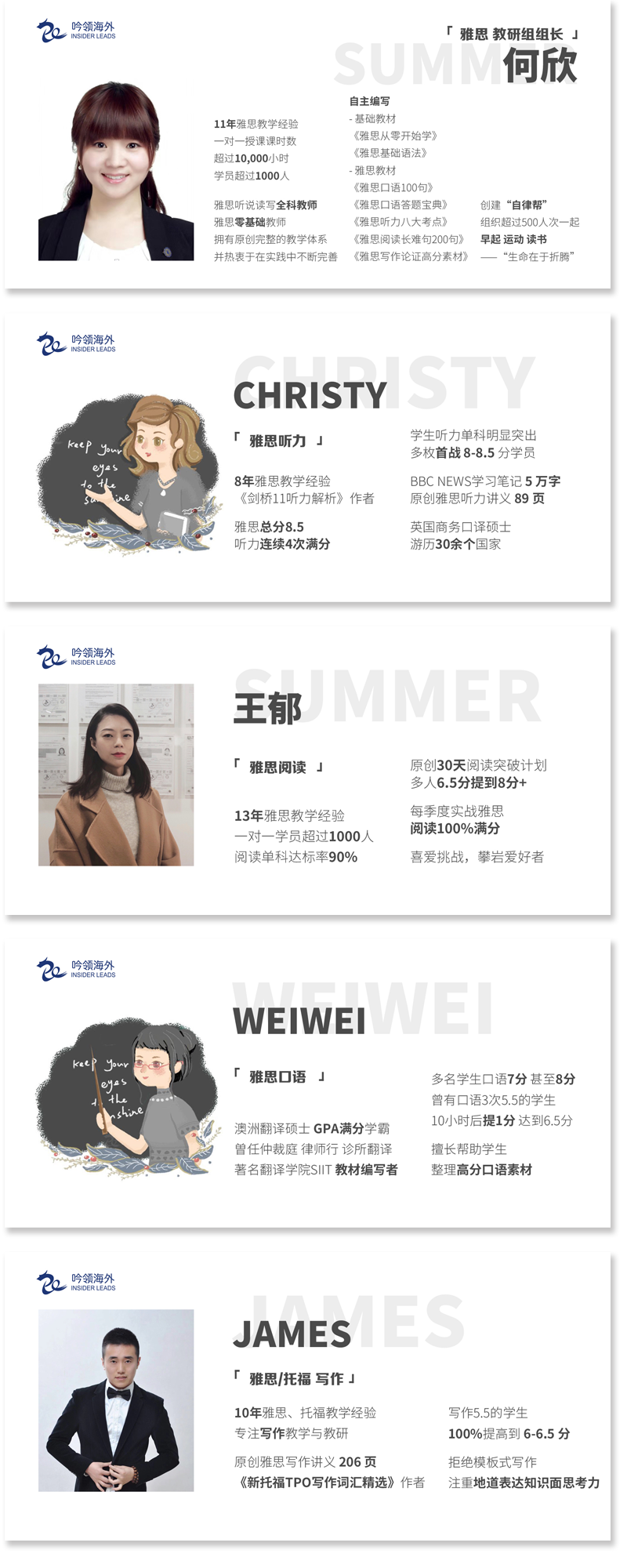 • 吟领海外为大家集结了国内各大城市雅思名师,平均钻研雅思教学10年;