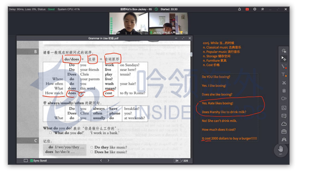 吟领 Kid's Box 教师会引导学生科学的开口重复、从而加深印象、学会运用,并获得老师最及时、最有针对性的反馈,从而精准地提高英文能力