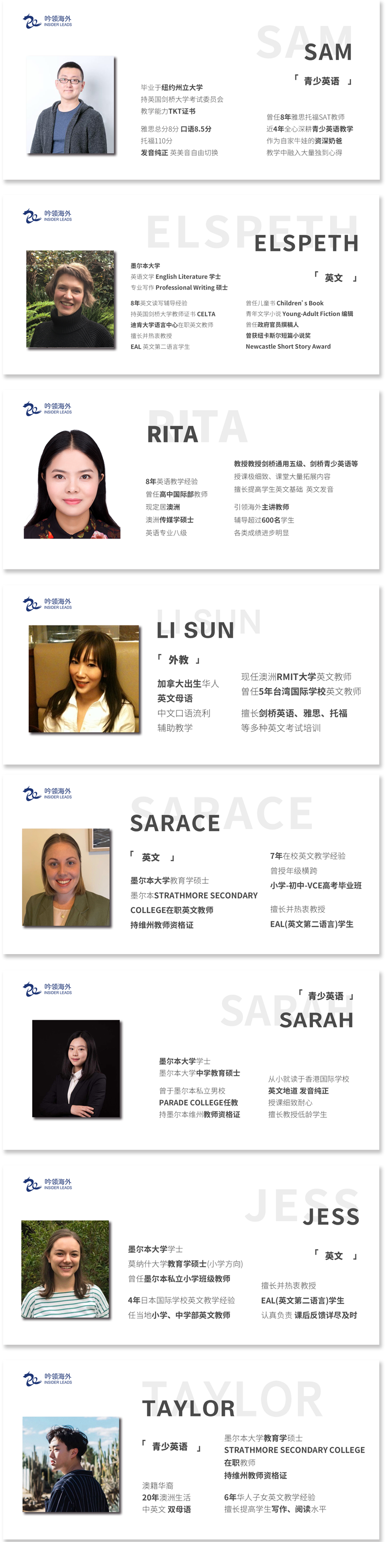 • 吟领众多教师、教研人员拥有澳洲当地VIT教师资格证+教育学硕士文凭
