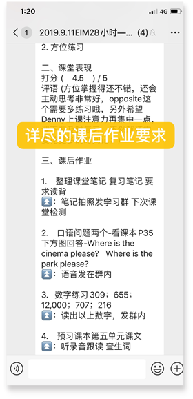 • EIM 每节课后,老师根据课堂表现私人定制课后作业,并填写超详细课堂反馈