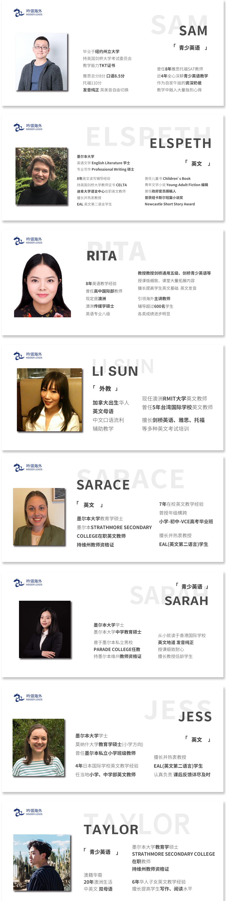 • 吟领众多教师、教研人员拥有澳洲当地VIT教师资格证+教育学硕士文凭
