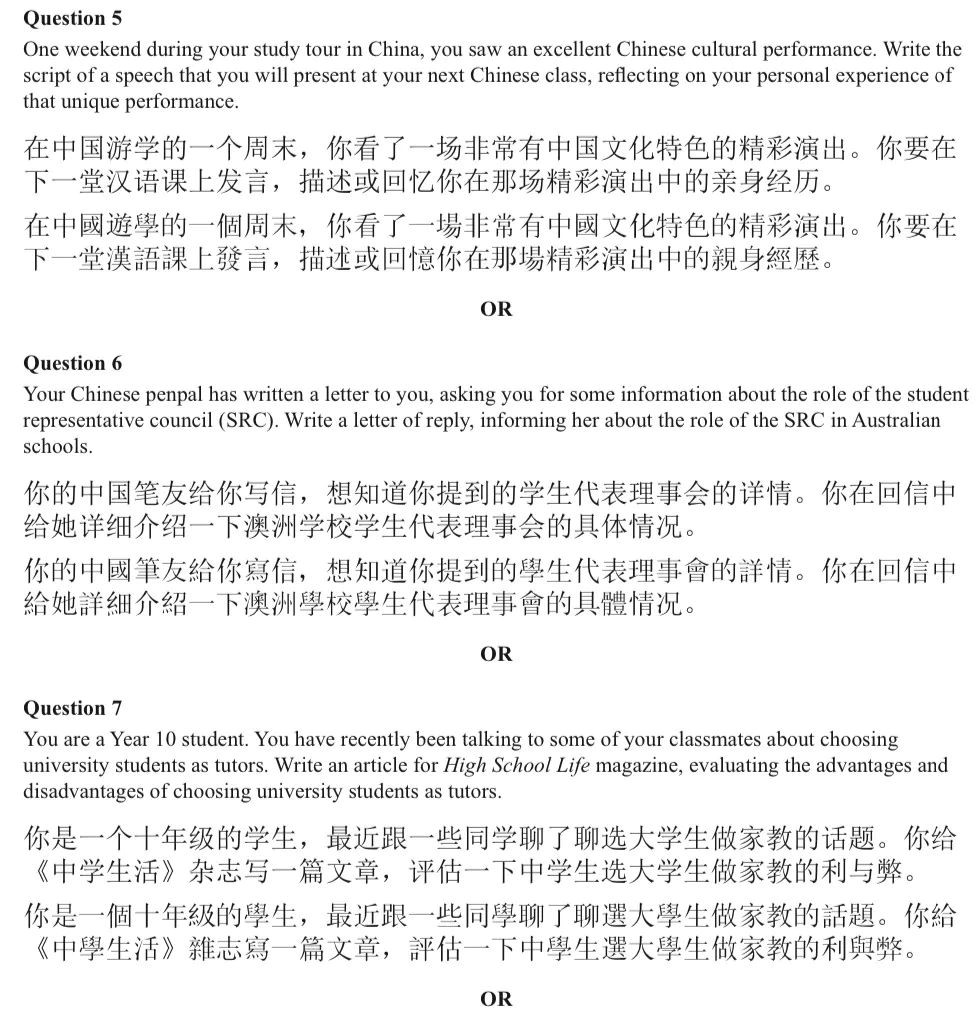 很多题目都给了学生发挥创造力的空间,比如2020年VCE中文第一语言考试的第六题: