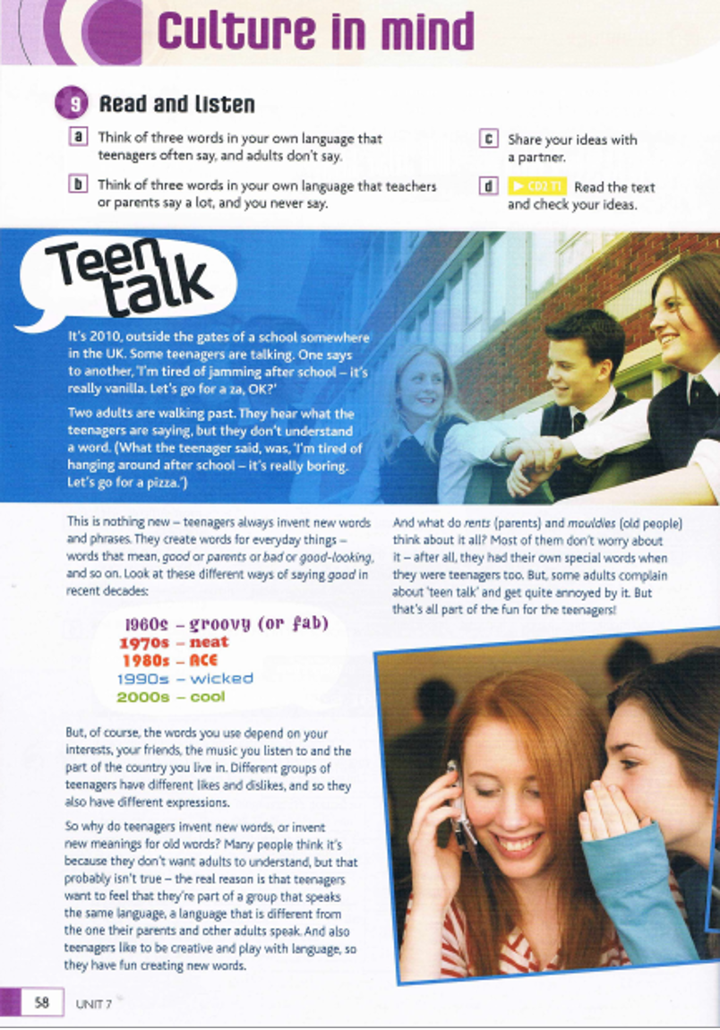 本单元的主题是学习语言。Culture in Mind就介绍了英国青少年会在沟通中,根据自己的兴趣爱好造词的现象。之后的练习也让学生对于如何表达和如何学习语言有更深入的体会。