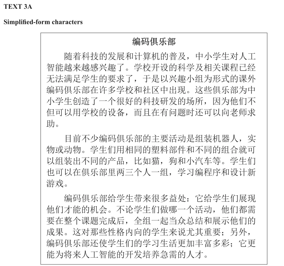 在Part A,学生首先有五分钟的时间来阅读一篇短文(Text 3A)。随后,学生需要听一段录音 (Text 3B)。录音会被播放两遍。最后,学生需要根据所阅读的短文(Text 3A)和所听到的录音(Text 3B)来回答问题。