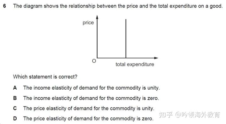 解析:这题重点要看清横轴代表总支出,而不是更常见的数量。因此,D选项是错的,这不是一条Perfectly Inelastic Demand Curve。