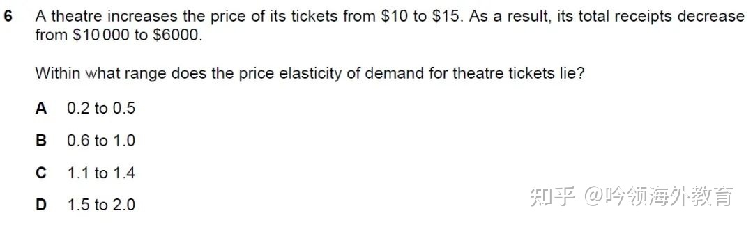 解析:这题是一道两步骤的PED的计算题,首先要根据Total Revenue 和Price算出Quantity (Q1=10000/10=1000; Q2=6000/15=400),再根据PED公式来计算出PED=1.2,所以选C。