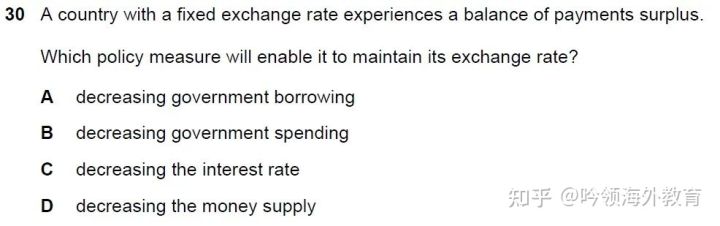解析:The Balance of Payments was in Surplus,对Domestic Currency的需求就会过多。解决这个问题的最好方法是Lower the Interest Rate and 鼓励 Outflow of Currency来维持Exchange Rate。