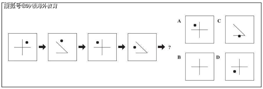 本题选自9到11年级考试的抽象推理部分。在这一部分中,题目会要求学生能够根据提供的信息找到规律或者识别出下一个图形。例如本题需要找出一组图形之间的变化规律,并选择最符合逻辑的答案。