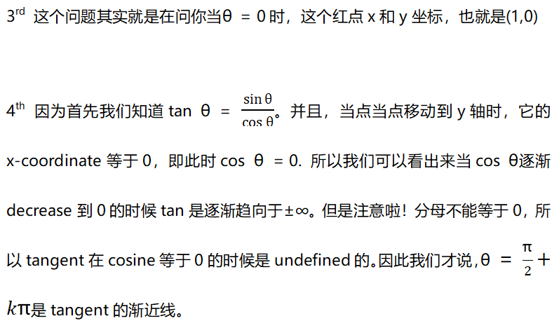 4.为什么tan θ 的asymptotes是kπ + π/2 ?