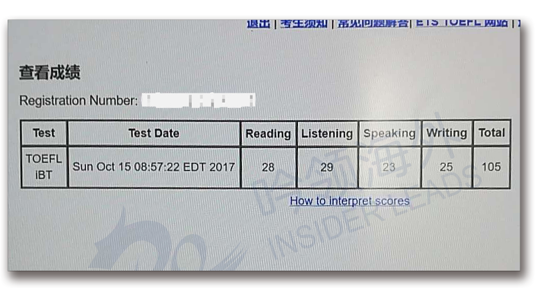 总分:105 (阅读28 听力29 口语23 写作25)