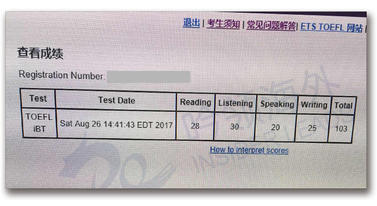 总分:103 (阅读28 听力30 口语20 写作25)