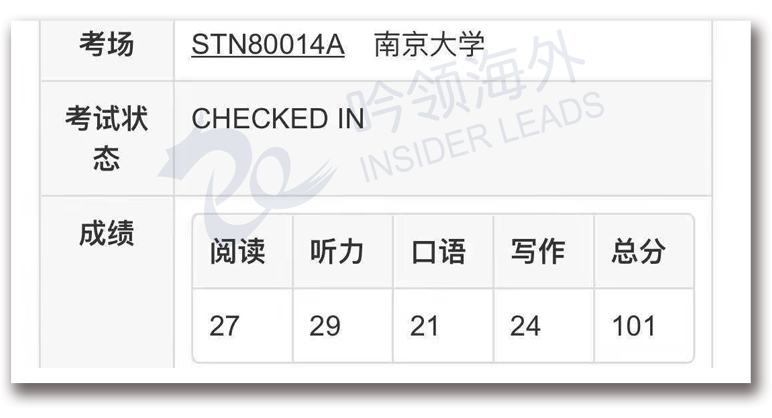 总分:101 (阅读27 听力29 口语21 写作24)