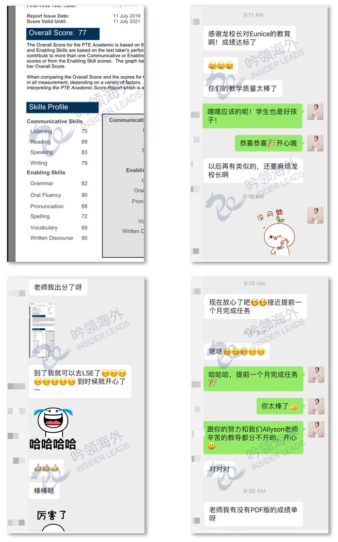 雅思有7分水平,初试PTE受挫 流利度只有38分,又转回雅思备考 ,仍然无果,后来找到龙老师,结课后首考,四项满分!